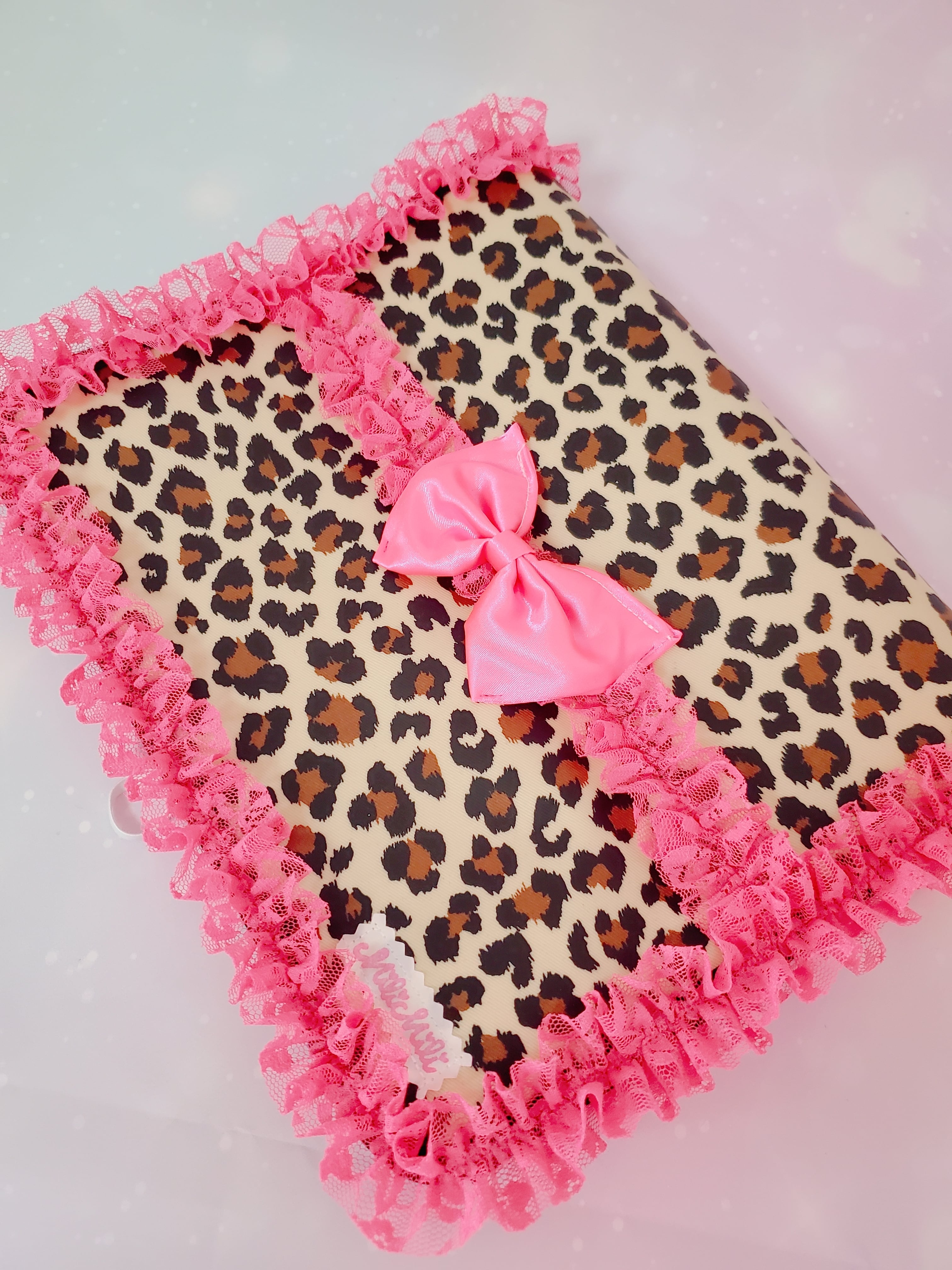 レオパードのビニール生地に、フリフリレース、リボン付き♡